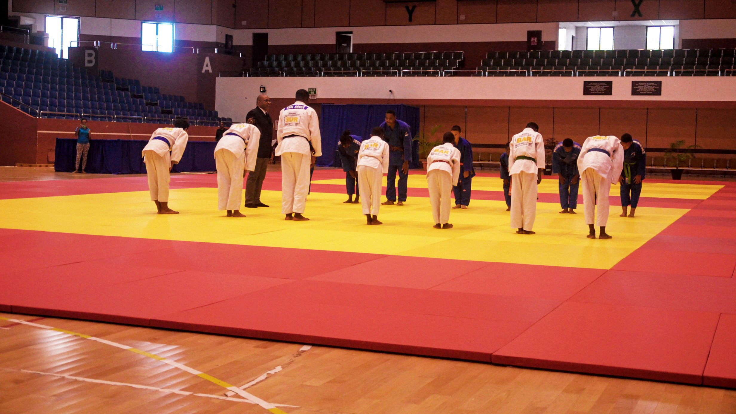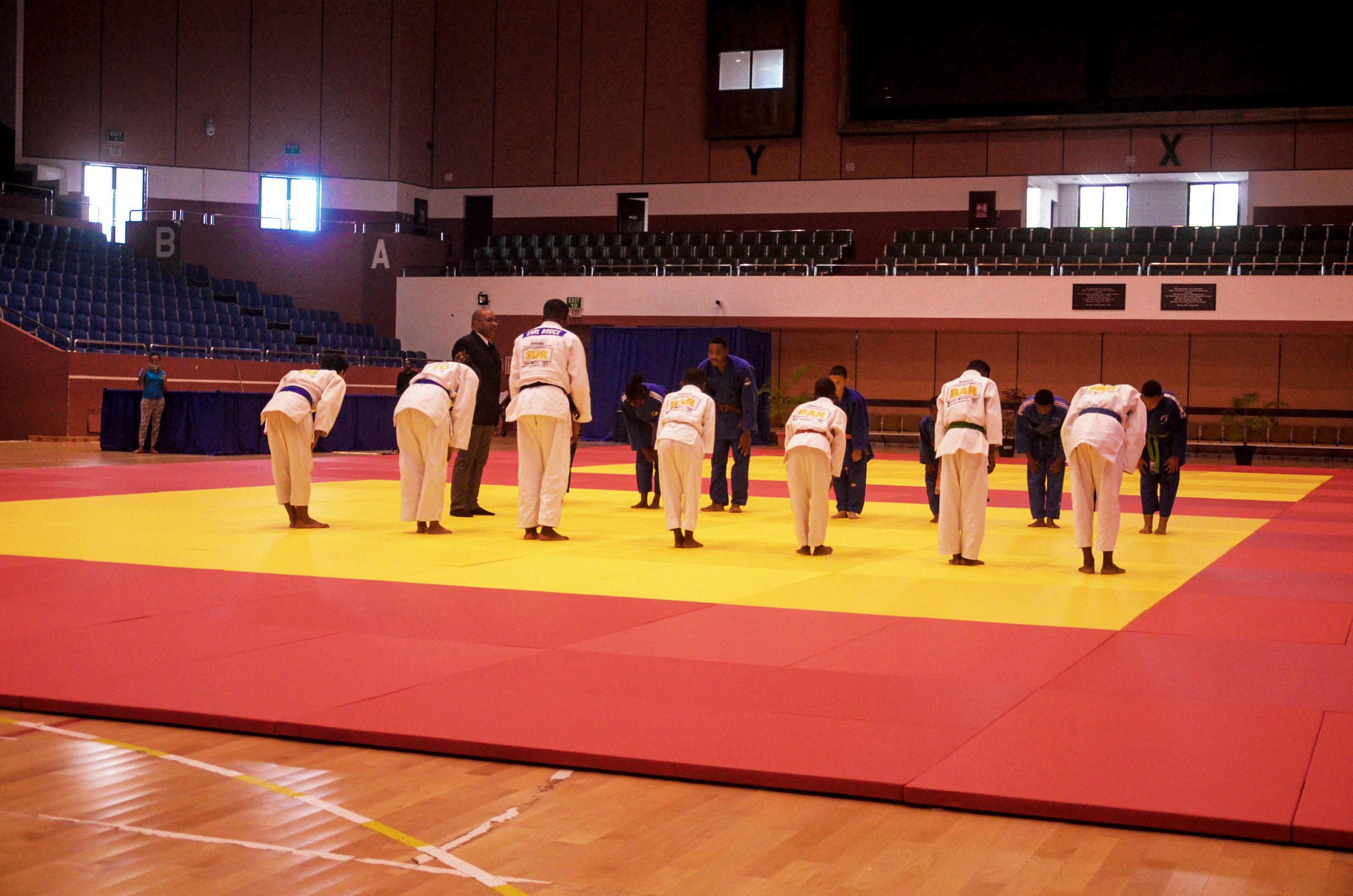 These principles stressed the flexibility and suppleness of mind and body necessary for the practice of judo. They are exemplified by ‘JU’, the Japanese word for gentle and yielding, and ‘DO’, the way or method; thus the origin of the word Judo. The place where Judo is taught and practiced is called a "Dojo”. Indirectly translated from the Japanese language, it means “hall of the temple” – gymnasium. Judo instructors consider the Dojo a place of dignity and cleanliness. Since Judo is a truly contact sport which includes throwing, grappling, choking arm-locks and: atemi waza” (assaulting technique), rules and regulations are rigidly enforced to ensure sporting harmony. All well-organized Dojo are run according to rules – these rules must be learned and carried out universally. One of the most important and practical reasons for Dojo rules and Judo etiquette is safety. Safety precautions are never to be apologized for. It must be stressed that everything done in a Dojo is based on “safety first”.